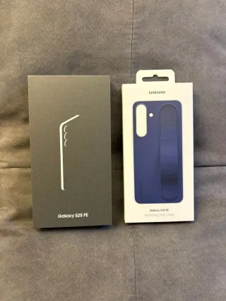 Funda original Samsung para Galaxy S25 FE en color azul. Incluye soporte. - Diseño con agarre y soporte integrado. - Protege tu dispositivo con estilo. - Factura Samsung.