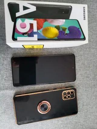 Teléfono móvil Samsung A71 en buen estado, listo para usar. Se incluye una funda protectora. - Pantalla de gran tamaño. - Diseño elegante y moderno. - Funda de color claro para proteger el dispositivo.