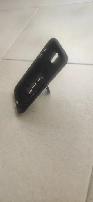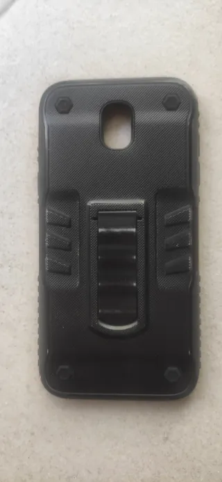 Funda protectora para Samsung J5 2017 con diseño robusto y soporte integrado. - Color negro. - Material resistente. - Incorpora un soporte abatible para visualización horizontal.
