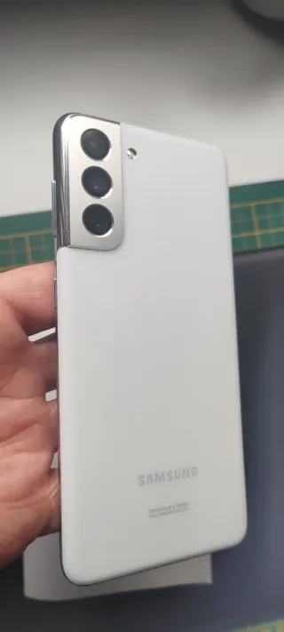 Teléfono móvil Samsung Galaxy S21 en color blanco. Estado impoluto. Tres fundas de regalo. Protector de gel puesto. No negociable.