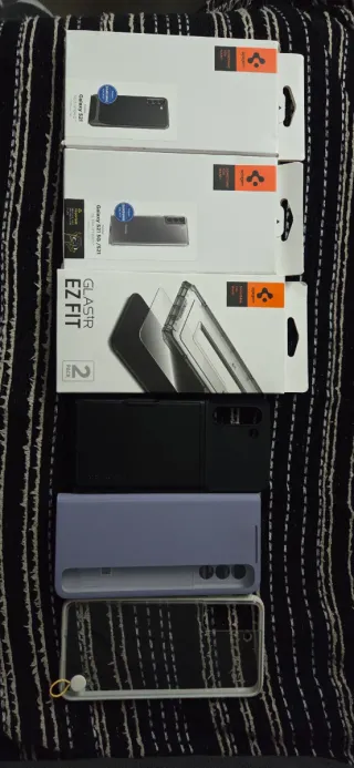Lote de accesorios para Samsung Galaxy S21. - 2 fundas protectoras nuevas Spigen Neo Hybrid y Ultra Hybrid - 3 fundas protectoras usadaa - Pack de dos cristales templados Spigen GlastR EZ FIT