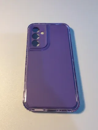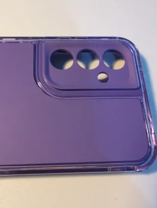 Funda protectora para Samsung A56 en color morado translúcido. Diseñada para ofrecer una protección segura y un estilo moderno. - Material resistente. - Diseño transparente con borde reforzado. - Acceso a todos los puertos y botones.