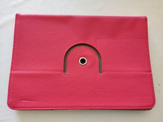 Funda en color rosa acolchada para tablet de 10 pulgadas. Se puede girar zona donde se coloca la tablet para mayor comodidad de uso.