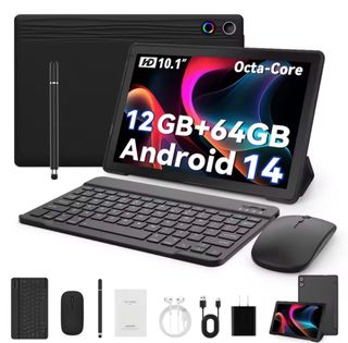 Tablet de 10.1 pulgadas con procesador Octa-Core y sistema Android 14. Incluye lápiz táctil, teclado y ratón. - 12 GB de RAM. - 64 GB de almacenamiento interno. - Diseño elegante en color negro