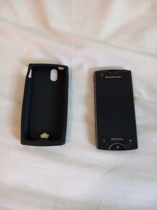 Teléfono móvil Sony Ericsson Xperia, color negro. Se incluye una funda de silicona negra. El teléfono se ve en buen estado, sin señales de desgaste importantes. - Modelo Xperia - Funda protectora de silicona incluida