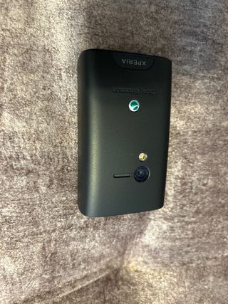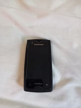 Teléfono móvil Sony Ericsson XPERIA en color negro sin usar pero la batería no funciona, incluye funda y cargador
