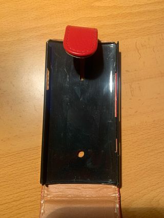 Sony Xperia Z3. Incluye ventana superior para ver la hora, llamadas y notificaciones sin abrir la tapa. Estado usado en buen estado, con pequeñas marcas de uso pero sin roturas ni daños importantes. Fabricada en símil cuero con textura elegante.