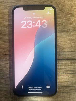 iPhone 12 de segunda mano en color azul. - Capacidad de almacenamiento de 64GB. Funciona a la perfección. Pantalla intacta, solo marcas en los laterales, pero siempre usado con funda y cristal protector.