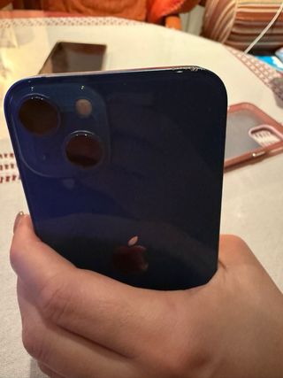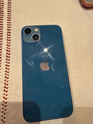 Teléfono móvil iPhone 13 en color azul. - Pantalla de 6.1 pulgadas. - Sistema de cámara dual. - Chip A15 Bionic. El tlfn se encuentra en buen estado, solo tiene una zona un poco picada en la parte de arriba, la salud de la batería está al 84%. Se vende con su caja original y varias fundas y cristales templados sin estrenar.