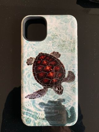 Funda para iPhone con un diseño de tortuga marina nadando en aguas cristalinas. Incluye una bolsa de terciopelo para guardarla. En perfectas condiciones. - Diseño de tortuga marina. - Incluye bolsa de protección.