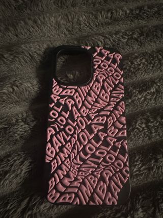 Funda para móvil con un diseño llamativo y moderno. El relieve de las letras crea un efecto visual único. - Diseño con el logo de la marca repetido. - Color rosa y negro.