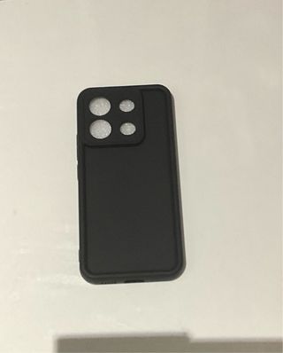 Funda protectora de color negro para teléfono móvil. Diseñada para cubrir la parte trasera y los laterales del dispositivo. Modelo Redmi Note 13 Pro 5G. Nueva sin usar. - Acabado mate. - Diseño con módulo de cámara cuadrado.