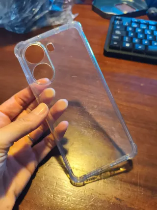 Funda protectora transparente para móvil. - Diseño claro que permite ver el color original del teléfono. - Material flexible y resistente.