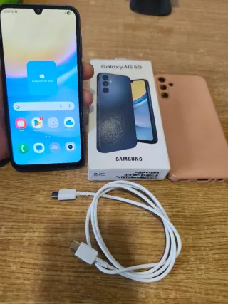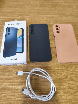 Teléfono móvil Samsung Galaxy A15 5G en color azul marino. Incluye caja original y funda rosa. - Modelo: Galaxy A15 5G - Color: Azul Marino - Incluye: Caja original, funda rosa, cable USB-C. -Esta en perfecto estado. Compra segura garantizada. ¡MIRA MIS VALORACIONES!