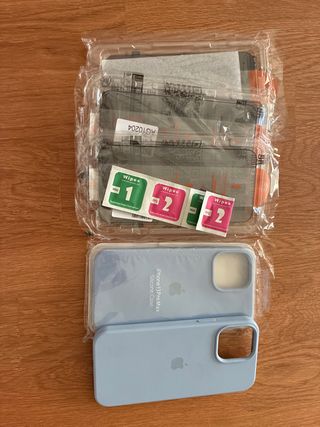 Protege tu iPhone 13 Pro Max con este pack de fundas y cristales. - Fundas de silicona en color azul claro. - Cristales protectores para la pantalla. - Incluye toallitas de limpieza.