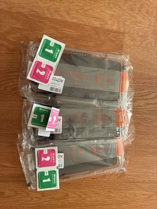 Conjunto de tres fundas para iPhone 15 Plus. - Funda amarilla. 10euros - Funda azul claro. 10euros - Funda lila.10 euros - Resto de fundas 5 euros cada una o todas por 50e