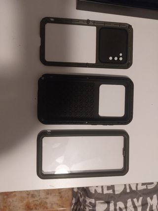 funda rígida con cristal templado, de lo mejor en protección para el móvil y en perfecto estado. se une con tornillos y lleva 6 de fondillo más su respectiva llave Allen