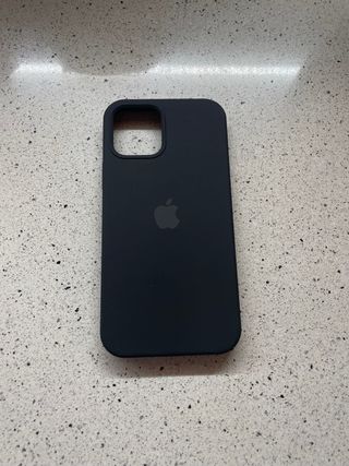 Funda protectora para iPhone 12 imitación en color negro. - Diseño elegante y minimalista. - Tacto suave y agradable. - Recorte preciso para la cámara.
