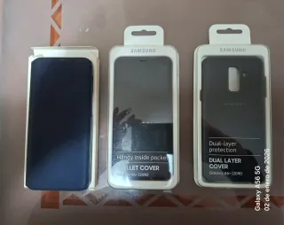 Dos fundas para Samsung Galaxy A6+ (2018). Y una para Samsung A70, todas ellas originales, las dos con tapa totalmente nuevas, la trasera esta usada pero muy bien conservada - Una funda tipo cartera en color azul marino para Samsung A70............6€ - Una funda tipo cartera con capa en color negro para Samsung A6+.......6€ - Una funda trasera para Samsung A6+.......... 3€