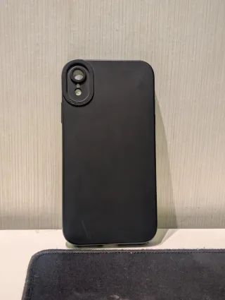 Funda protectora para iPhone XR en color negro. Diseñada para ajustarse perfectamente al dispositivo. Poco uso. - Material: Silicona - Acabado: Mate - Protección contra golpes y arañazos