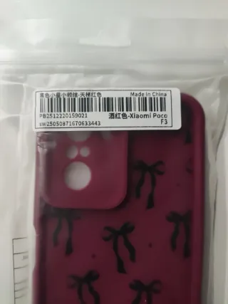 Funda para Xiaomi Poco F3 con diseño de lazos en color granate. SIN ESTRENAR NI ABRIR LA BOLSA. Tengo móvil nuevo de otro modelo y ya no la puedo devolver