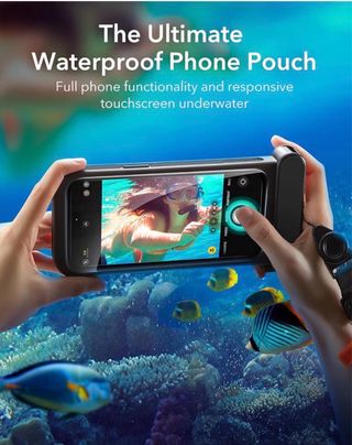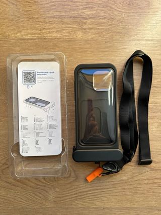Funda impermeable diseñada para proteger tu teléfono en entornos acuáticos. Permite el uso táctil de la pantalla bajo el agua. - Compatible con iPhone 14 Pro Max y iPhone 15 Pro Max. - Material resistente al agua. Usado una sola vez. Precio en Amazon: 20,99€