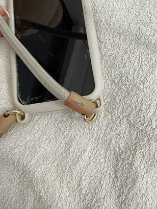 Funda para iPhone 11 con cuerda de Bimba y Lola. El diseño incluye una cuerda para llevar el móvil colgado. - Cuerda ajustable. - Detalle de cuero en los enganches.