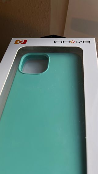 Funda para iPhone 13 de la marca Innova. Protege tu teléfono con estilo. - Color verde azulado. - Diseño liso y moderno.