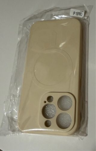Funda protectora para iPhone 15 Pro. - Diseño en color beige. - Incorpora anillo magnético para MagSafe. - Recorte preciso para la cámara. - Compatible 100% con Iphone 15 Pro, vendo por error en la compra