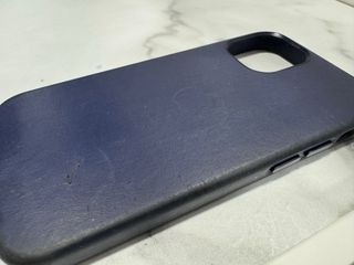 Funda de cuero azul para iPhone 12 Mini. - Material de cuero. - Compatible con MagSafe. - Marcas de desgaste apreciables en la foto.