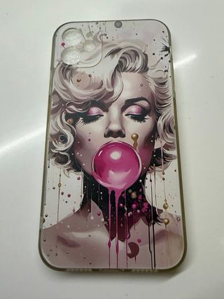 Funda para iPhone 11 con un diseño artístico de Marilyn Monroe. - Ilustración de Marilyn Monroe con burbuja de chicle. - Estampado con salpicaduras y detalles dorados. - Diseño llamativo y moderno.