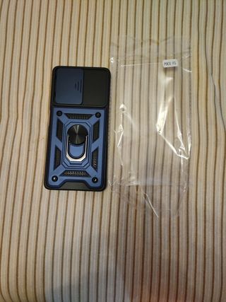 Funda protectora para móvil Poco F5. - Diseño robusto con anillo integrado. - Incluye tapa deslizante para proteger las cámaras. - Color azul y negro - Nueva nunca usada.