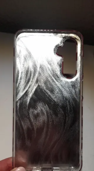 Carcasa protectora para móvil con un diseño exterior. - Material transparente. - Diseño interior con efecto veteado plateado.