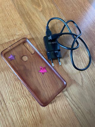 funda transparente y cargador Alcatel.