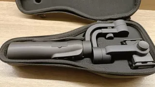 Estabilizador tipo gimbal para teléfonos móviles. Diseñado para facilitar la grabación de vídeos fluidos y profesionales. - Color negro. - Incluye funda de transporte, manual de instrucciones, cable cargador y accesorio trípode.