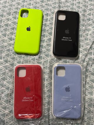 Conjunto de fundas nuevas de silicona para iPhone 11. Las puedo vender por separado. - Funda de color verde lima. - Funda de color negro. - Funda de color rojo. - Funda de color azul claro. !!!No son de la tienda oficial de Apple!!! Solo se ha usado un poco la amarilla pero esta perfecta, las demas estan nuevas a estrenar.