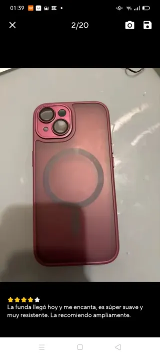 Funda para iPhone 13 en color rosa. Llegó hoy y me encanta, es súper suave y muy resistente. La recomiendo ampliamente. - Compatible con carga MagSafe. - Acabado translúcido.