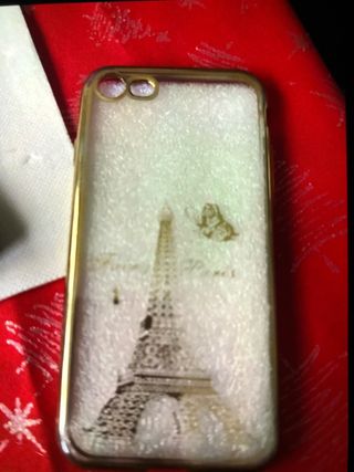 Funda protectora para iPhone 8 con un diseño de la Torre Eiffel. - Borde dorado. - Diseño transparente con imagen. - Protege tu teléfono con estilo.