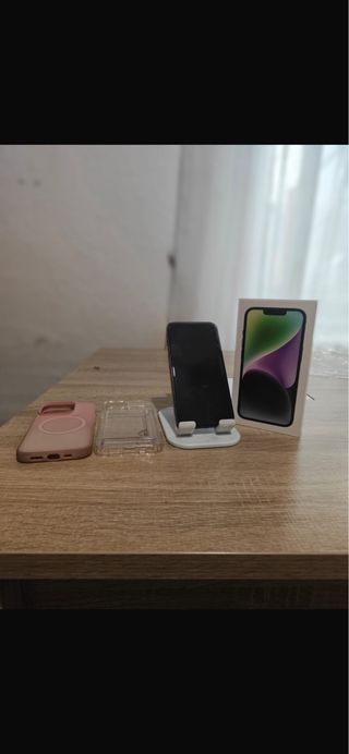 Se vende iPhone 14 en perfecto estado, junto con sus accesorios todo original - Funda rosa. - Caja original.