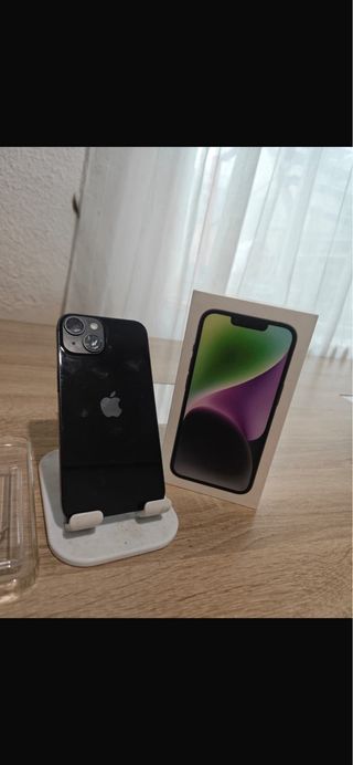 Teléfono móvil iPhone 14 en color negro. - Diseño elegante y moderno. - Pantalla nítida y vibrante. - Cámara dual para fotos de alta calidad. Nuevo con 2 fundas cargador nuevo caja