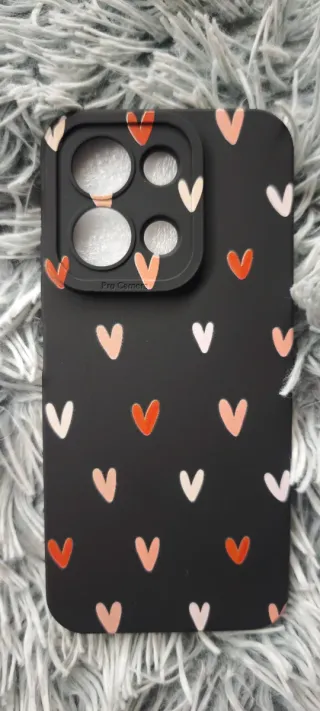 Funda para móvil Xiaomi Redmi 15C con un diseño divertido de corazones en varios tonos. - Color de fondo: negro. - Diseño de corazones en rosa, coral y blanco. Se vende completamente nueva, sin usar. La compré equivocadamente.