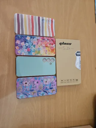 ¿Cansad@ de un móvil aburrido? ¡Para días grises, móviles de colores! Vendo pack de cuatro fundas coloridas para Samsung Galaxy S24. Las compré para un modelo erróneo, por eso están sin usar. ¡NUEVAS! - Funda con rayas verticales multicolores. - Funda con estampado floral vibrante. - Funda de color verde menta. - Funda con diseño floral y mariposas en tonos lilas (Esta es la única que se ha usado pero prácticamente como nueva) ADEMÁS, protege tu pantalla con el pack de 4 protectores de pantalla. También comprados Galaxy S24 por error y SIN USAR. Vendo todo junto o por separado. 1 funda: 3€ 4 fundas: 10€ Solo protectores: 5€