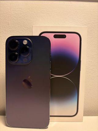 Se vende iPhone 14 Pro 128GB en color morado, junto con una funda protectora y cristal templado. Siempre con funda. Entrego en su caja. Sin ningún rasguño y marcas de uso. - Modelo: iPhone 14 Pro - Color: Morado - Incluye funda compatible con Magsafe y cristal templado - Salud de la Bateria 82% - Sin rasguños ni golpes, como nuevo