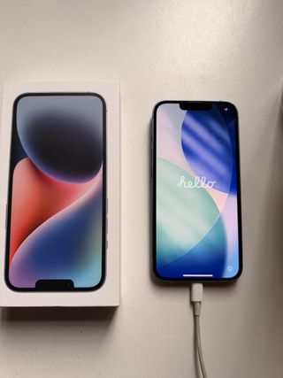 iPhone 14 con 128GB de almacenamiento. Como nuevo, muy MUY cuidado, no tiene ningún arañón ni rasguño, está completamente nuevo y funciona PERFECTAMENTE. 86% de salud de batería, con CAJA ORIGINAL у CABLE DE CARGA ORIGINAL. REGALO: 5 CRISTAL TEMPLADO + 5 FUNDAS - Modelo: iPhone 14 - Capacidad: 128GB