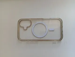 Funda protectora para iPhone 17 Pro con un diseño llamativo. - Material transparente con detalles en naranja. - Compatible con carga MagSafe. 20€ todas junta y separada 5€