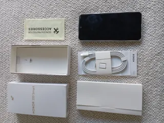 Teléfono móvil Honor 200 Smart. - Modelo ALT-NX1. - Dual SIM. - Incluye accesorios y caja original. - 4 GBs RAM y 256 MBs almacenamiento. - Aparte incluye cristal protector y funda transparente ya puestos. No tiene uso alguno. Era un regalo pero la persona no quería cambiar de teléfono.