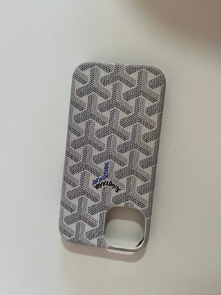 Funda para iPhone 13 o 14 con el distintivo estampado de Goyard en blanco. - Diseño clásico de la marca. - Patrón geométrico. - Abertura para la cámara.