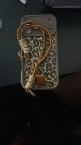 Funda para iPhone con un llamativo estampado de leopardo y un práctico soporte integrado. - Diseño de leopardo. - Soporte de color marrón.