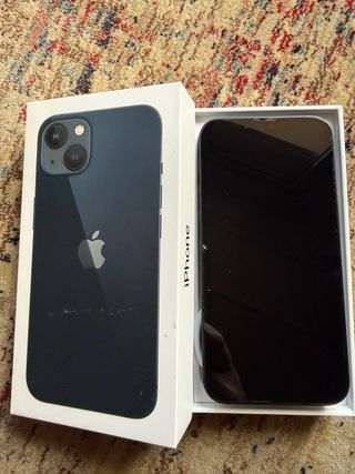 iPhone 13 con 128GB de almacenamiento en color negro. La batería se encuentra al 80% de su capacidad. Siempre con protector de Pantalla y Funda trasera - Capacidad: 128GB - Color: Negro - Estado de la batería: 80%
