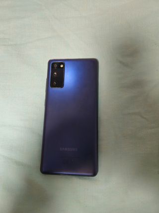 Samsung galaxy s20 que funciona perfectamente a pesar de tener un notorio castañazo en la pantalla, se entrega con funda azul